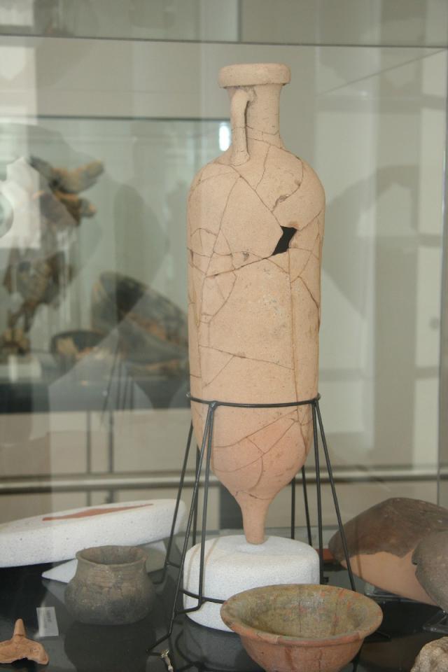 The display cabinet No. 1: On the Hemmaberg Mountain, a fragment of a Greek vessel from the fifth century BC was found for the first time. The princes of the Hallstatt culture fostered the same drinking tradition in the alpine area as the nobility of the Mediterranean area. Just like the Greeks, they mixed wine with water. They bought valuable drinking bowls and vessels from the Etruscans in Athens.