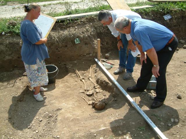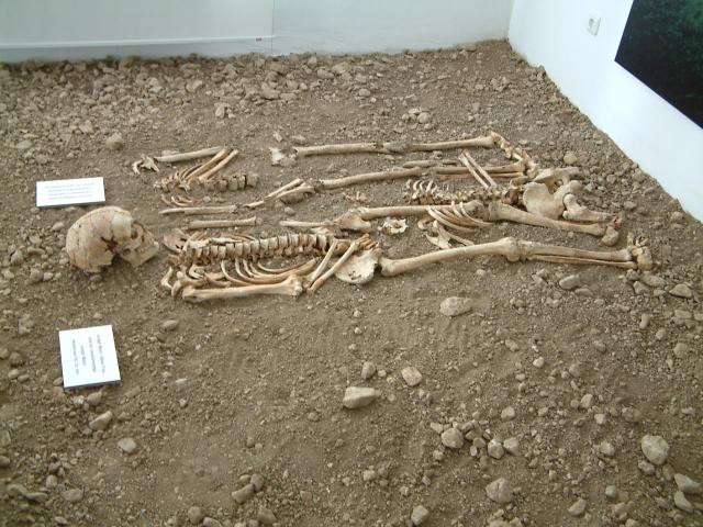 Eine Auswahl der Skelette wurde in Originalerde ausgestellt. Dem Besucher werden die Unterschiede von Frau und Mann im Knochenbau sowie Schädelumformungen, Krankheiten, Verletzungen und Bestattungssitten erklärt. Beispielsweise wurden Personen, die eines gewaltsamen Todes starben, bäuchlings begraben.