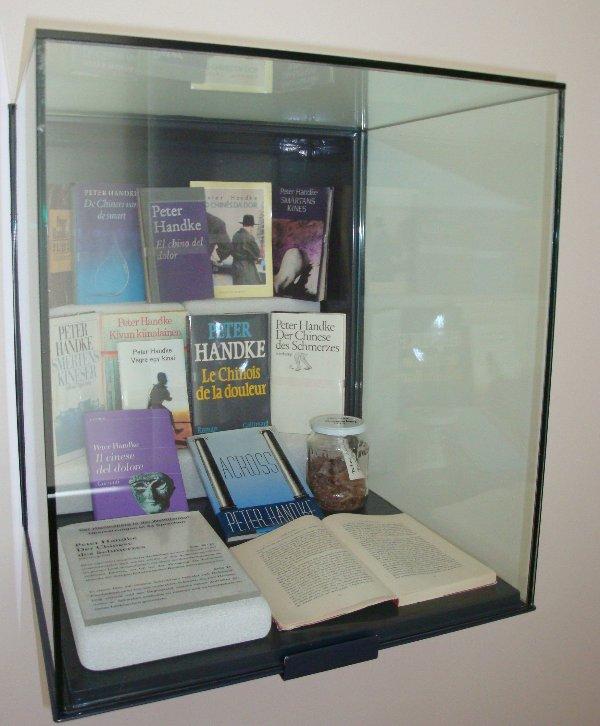 Vitrine 3: Der Griffner Autor, Peter Handke schrieb in seinem Buch „Chinese des Schmerzes" über die Ausgrabungen auf dem Hemmaberg und über die Abnahme der Mosaiken. Dieses Werk und damit der Hemmaberg gingen in die Weltliteratur ein, da es in 23 Sprachen übersetzt wurde.