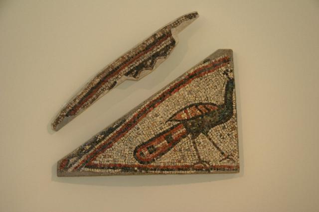 The mosaics display cranes, ducks and water birds. According to antique natural history cranes symbolised community spirit and vigilance to Christian writers.